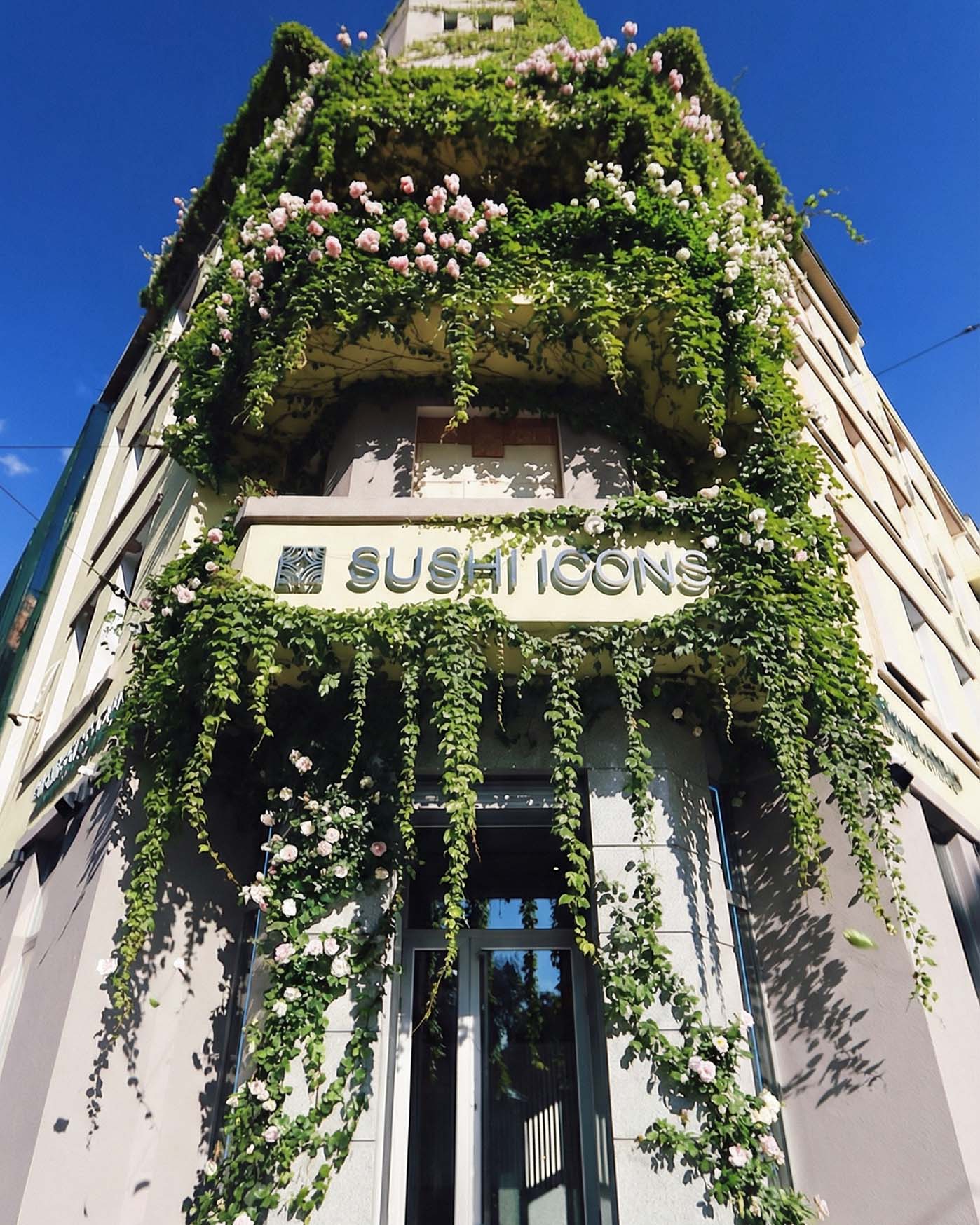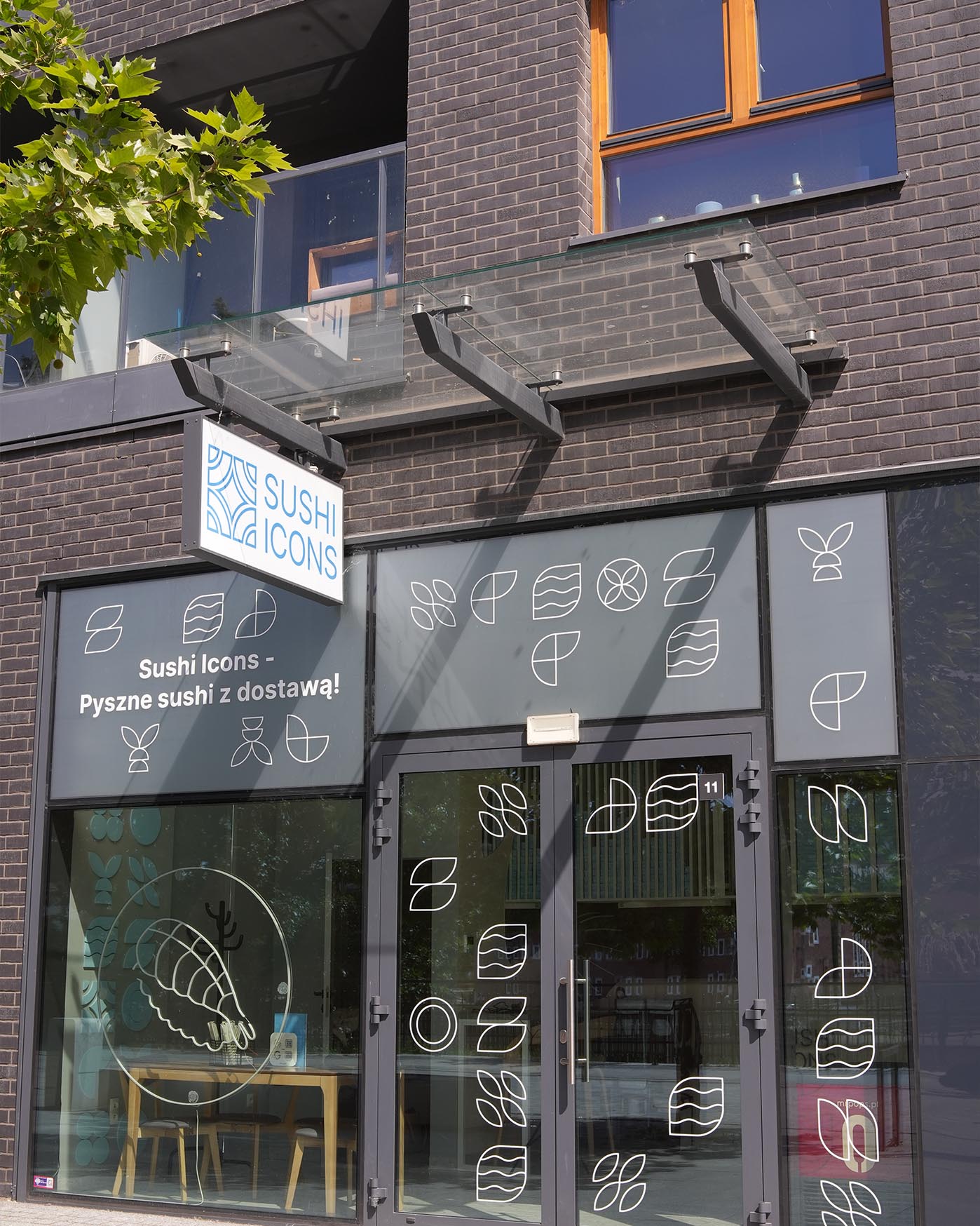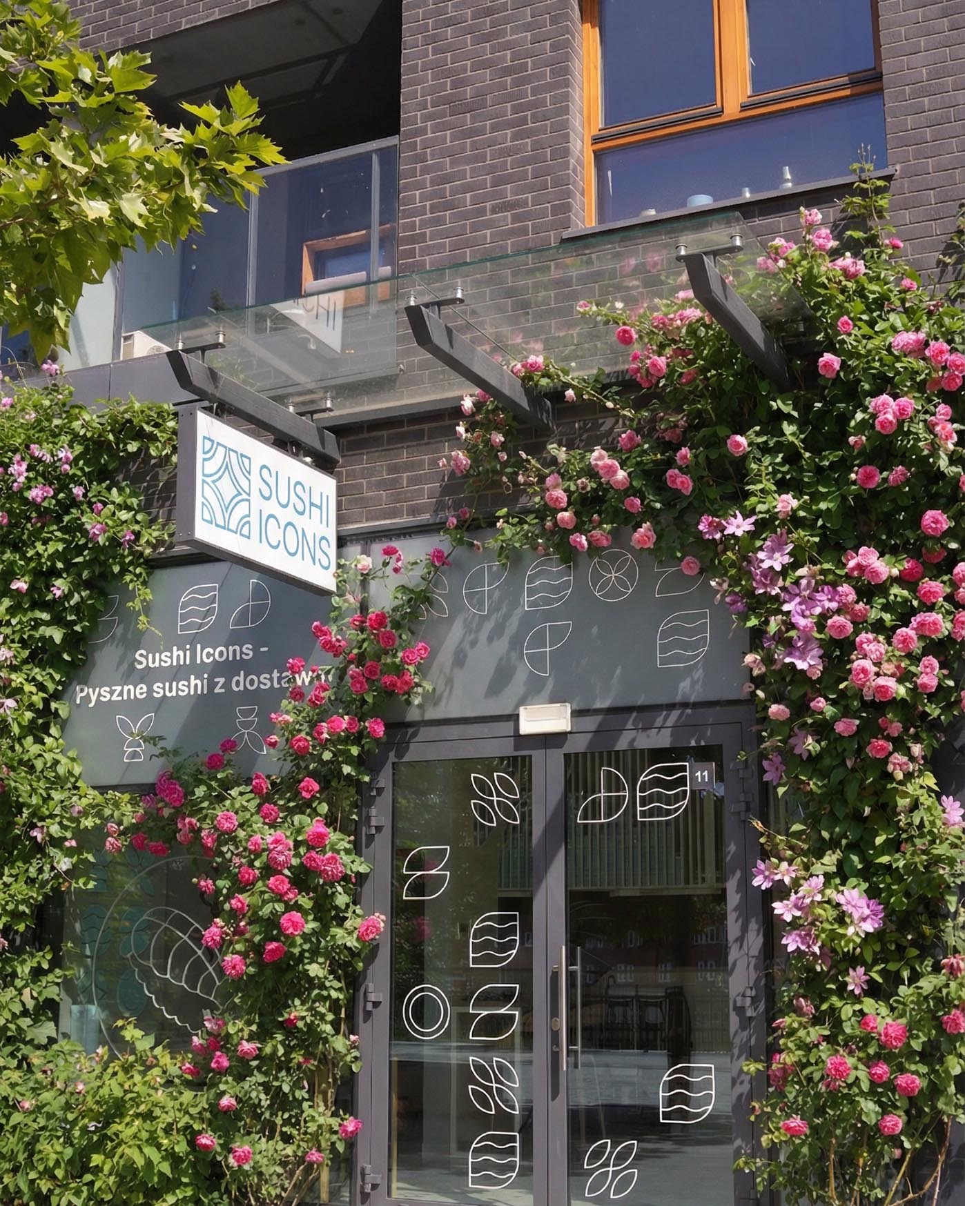 Спочатку ми працювали з реальною архітектурою точки. Фасад, вітрини, ритм вікон, айдентика Sushi Icons, усе це вже мало власний характер і стриманий міський настрій. Наше завдання полягало не в тому, щоб перекрити його декором, а навпаки, підкреслити форму будівлі та зробити простір живішим і сезоннішим.
